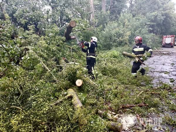 Рятувальники вночі продовжували розчищати автошляхи, на яких повалені негодою дерева перешкоджали руху транспорту.