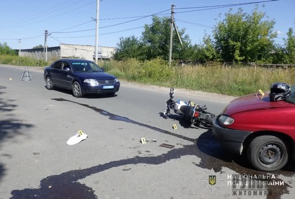 В Овручі зіткнулися автомобіль Peugeot та мотоцикл Spark: 13-річний водій мотоцикла у лікарні
