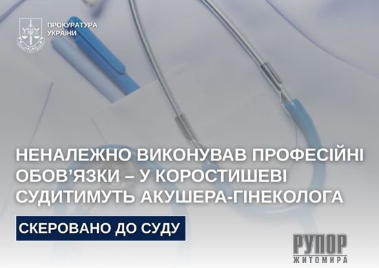 Ювенальним прокурором Коростишівської окружної прокуратури скеровано до суду обвинувальний акт стосовно лікаря акушера-гінеколога КНП «Коростишівська