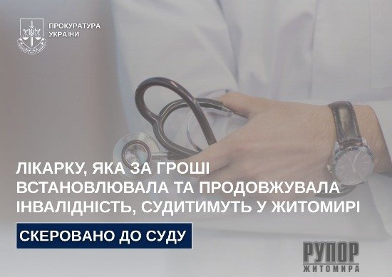 У Житомирі судитимуть лікарку, яка за гроші встановлювала та продовжувала інвалідність