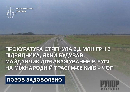 Прокуратура стягнула 3,1 млн грн з підрядника, який будував майданчик для зважування в русі на міжнародній трасі М-06 Київ – Чоп