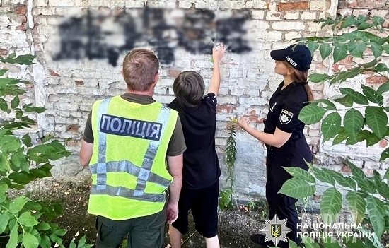Звягельські поліцейські разом із молоддю ліквідували графіті з рекламою наркотиків
