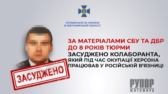 За матеріалами СБУ та ДБР до 8 років тюрми засуджено колаборанта, який під час окупації Херсона працював у російській в’язниці