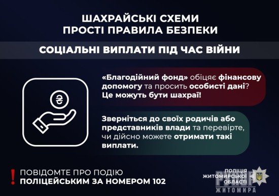 Коростенські поліцейські закликають: обов’язково перевіряйте інформацію про соціальні виплати на офіційних сайтах