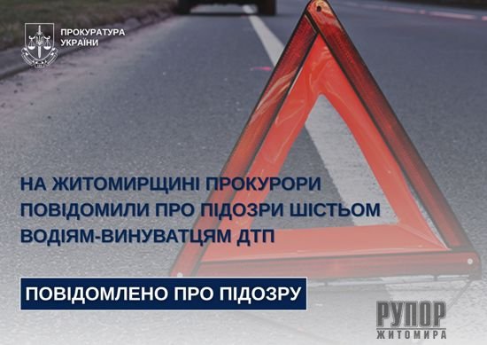 На Житомирщині прокурори повідомили про підозри шістьом водіям-винуватцям ДТП