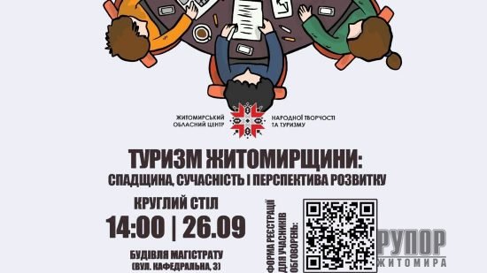 Управління культури та туризму Житомирської ОВА запрошує взяти участь у круглому столі «Туризм Житомирщини: спадщина, сучасність і перспектива розвитку»,