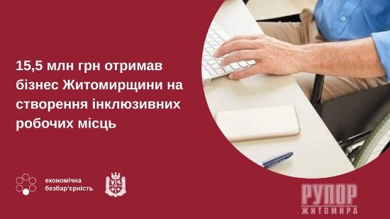15,5 млн грн отримав бізнес Житомирщини на створення інклюзивних робочих місць