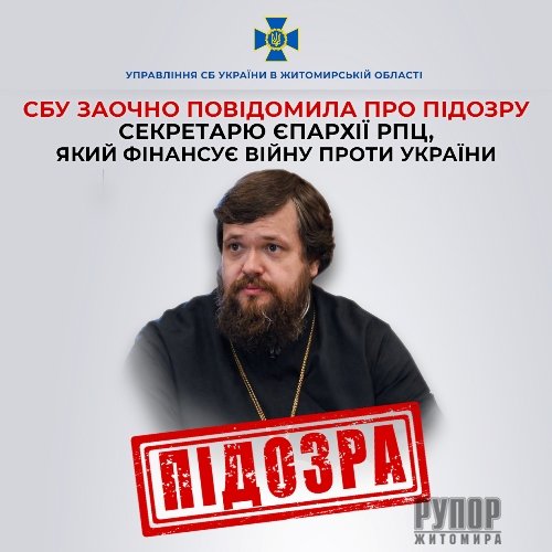 СБУ заочно повідомила про підозру секретарю єпархії рпц, який фінансує війну проти України