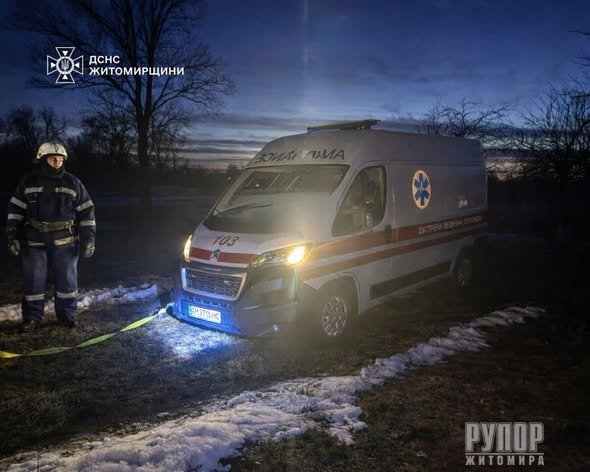 На Коростенщині автівка швидкої застрягла на узбіччі