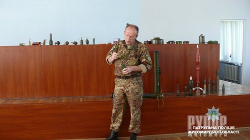 26 квітня, в Управління патрульної поліції в Житомирській області прибули працівники вибухотехнічної служби ГУНП. Вибухотехніки розповіли патрульним про заходи безпеки під час виявлення пристроїв або предметів, схожих на боєприпаси. Разом з тим, під час лекції патрульним продемонстрували макети снарядів, бойових гранат та інших саморобних пристроїв. Громадяни, якщо ви помітили підозрілий предмет, що за зовнішнім виглядом схожий на вибуховий в жодному разі не торкайтесь його та не чиніть будь-який вплив. Телефонуйте спецлінії 102 та повідомляйте про знахідку патруль, будьте обережними.