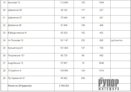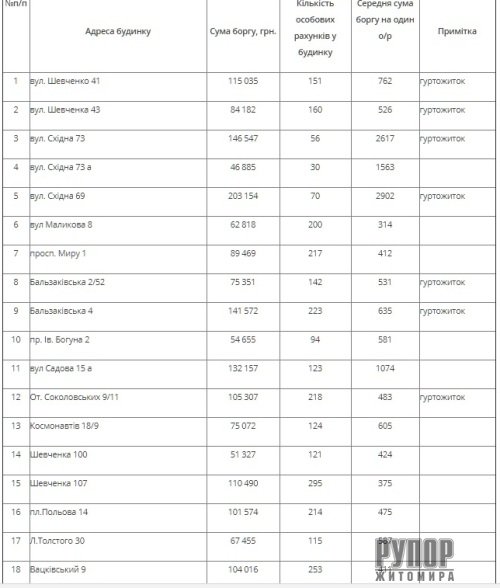 Є велика кількість будинків у м. Житомир, мешканці яких заборгували КП «Житомирводоканал» значну суму коштів за надані послуги. В разі не проведення розрахунків найближчим часом безперебійне надання послуг у будинках може опинитись під загрозою.