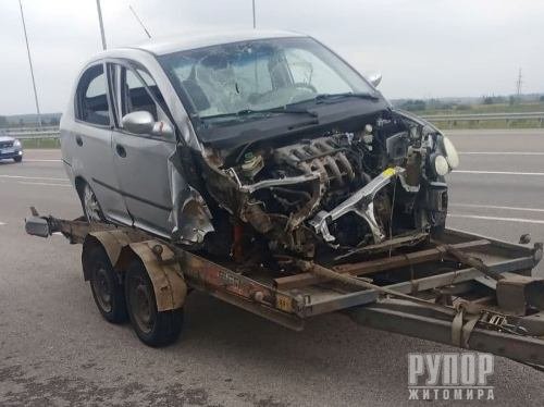 В Житомирській області на причепі перевозили битий автомобіль без документів