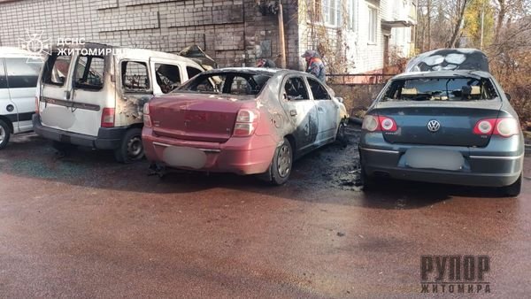 У Житомирі у дворі багатоповерхівок горіли чотири автівки