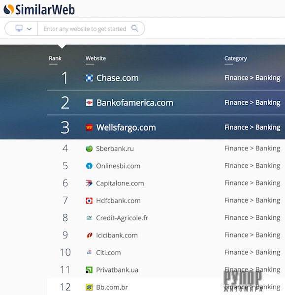 Сайт ПриватБанку увійшов до десятки найпопулярніших банківських сайтів світу
