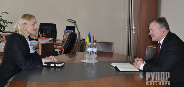 Житомирщина продовжує зміцнювати міжнародні партнерські відносини. Аби обговорити можливі шляхи співробітництва та налагодити двосторонні контакти, перший заступник голови облдержадміністрації Геннадій Дмитренко 28 листопада провів робочу зустріч із першим секретарем з торгово-економічних питань Посольства Республіки Білорусь в Україні Вірою Воронко. Участь у ній також брали т. в. о. директора департаменту економічного розвитку, торгівлі та міжнародного співробітництва облдержадміністрації Віктор Градівський, заступник директора департаменту агропромислового розвитку облдержадміністрації Леонід Бабич і заступник директора департаменту промисловості, розвитку інфраструктури та туризму облдержадміністрації Олексій Русіч.