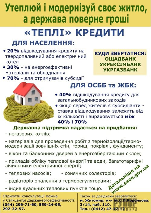 Стимулювання населення, ОСББ та ЖБК до впровадження енергоефективних заходів здійснюється за рахунок відшкодування частини «теплих» кредитів.