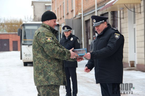 19 лютого в обласному ГУНП зустрічали поліцейських, які упродовж трьох місяців несли службу у підрозділах Донеччини, виконуючи завдання із забезпечення публічної безпеки та протидії злочинності у містах Бахмут, Маріуполь та Соледар. Привітали прибулих врученням чергових спеціальних звань. Трохи більше двох десятків поліцейських з територіальних підрозділів Житомирщини у складі зведеного загону повернулись з територій, де триває антитерористична операція. У дворі Управління їх зустрічали рідні, друзі та колеги. - Вітаю з поверненням додому, дякую за сумлінну і відповідальну службу на Донеччині та бажаю, аби ваша подальша робота проходила з честю для вас та користю для людей, - сказав заступник начальника ГУНП – начальник кримінальної поліції Сергій Крупєй, звертаючись до прибулих. Також під час зустрічі дев’ятьом працівникам територіальних відділів та відділень були вручені чергові спеціальні звання від лейтенанта поліції до капітана поліції. - Окрім практичного досвіду роботи в умовах проведення антитерористичної операції та особистих вражень від кількамісячного перебування на Донеччині ми привезли також і Подяку від Соледарської об’єднаної територіальної громади за свою роботу, - розповів командир зведеного загону Сергій Демедюк. Попереду у цих працівників кількаденна відпустка, а потім вони продовжать свою службу безпосередньо за місцем її проходження.