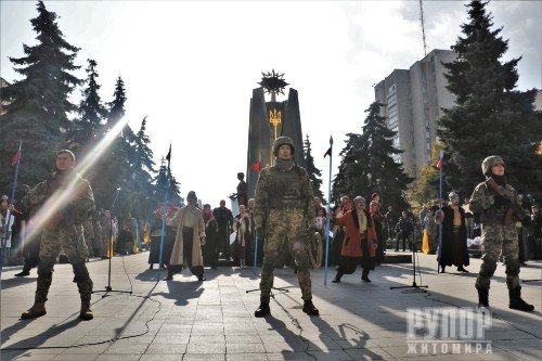 «Захисникам України у війні з російським агресором». Пам’ятний патріотичний знак відкрили у Житомирі у День українського козацтва, свято Покрови та День захисників і захисниць України.