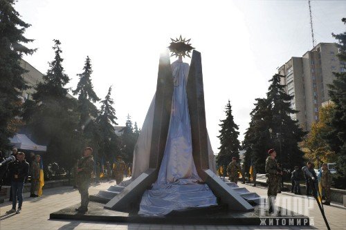 «Сьогодні, у велике свято, ми відкриваємо пам’ятник. Я мріяв, що його ми відкриємо тоді, коли останній солдат залишить поле бою. Та ми не можемо чекати. Цей пам’ятник важливий не тільки для сімей загиблих, для дітей, що стоять з портретами свої батьків. Це важливо для всього Житомира. Я певен: через 50 років сюди приходитимуть діти, будуть класти квіти та дякувати Героям, яких немає», - каже