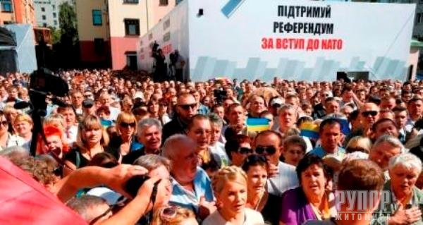 5 вересня в Києві відбулися збори громадян щодо всеукраїнського референдуму стосовно вступу України до НАТО. Житомиряни, які були учасниками зборів, проголосували за доцільність проведення такого референдуму. “Ми вважаємо, що цей крок в нинішній ситуації є вкрай доцільним. Хочеться відчувати себе захищеними. Наприклад, ви бачили, яка агресія була з боку Росії до Грузії доки вони не втупили в НАТО. Нам потрібно прагнути до тих стандартів, які є в НАТО. Вважаємо, що провести референдум одночасно з достроковими виборами до Верховної ради - найоптимальніше рішення”, - коментує голова Богунської районної ради, керівник Богунської районної партійної організації ВО “Батьківщина” Людмила Янушевич. Збори затвердили формулювання питання, яке пропонується винести на всеукраїнський референдум. Воно звучатиме таким чином: "Чи підтримуєте Ви приєднання України до Організації Північноатлантичного Договору (НАТО) як системи колективної безпеки?". "Ми мусимо звикати до того, що доленосні, сильні, історичні рішення мусять прийматися не в кабінетах політиків, а повинні прийматися на всенародних референдумах", - наголосила Юлія Тимошенко. Крім того, учасники зборів утворили ініціативну групу з 500 осіб, визначили її персональний склад та доручили їй організувати процес збору підписів. Уповноваженим представником ініціативної групи визначено народного депутата Сергія Власенка. Відповідні рішення будуть передані до Центральної виборчої комісії. Прес-служба Житомирської обласної партійної організації “ВО ”Батьківщина”