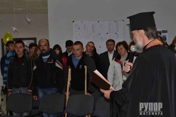 У рамках відкриття головного приміщення Центру волонтерської допомоги, відбувся благодійний аукціон, до організації якого долучилися чимало житомирських організацій та волонтерів. Зокрема, МГО «АРТ-Село», Житомирська обласна літературно-мистецька студія ім. М.Клименка, Мистецька гільдія «Неабищо», Міжнародне братство Юрка Гудзя, громадський рух «За нашу свободу» та житомирська волонтерка Юлія Толмачова. У заході взяли участь й найпочесніші гості – військові, які нині перебувають на лікуванні та проходять реабілітацію після поранень у зоні АТО і настоятель Свято-Михайлівського кафедрального собору Отець Богдан.