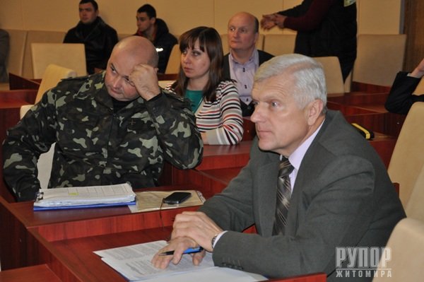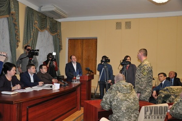 голова облдержадміністрації Сергій Машковський, заступник голови обласної ради Руслан Годований, в.о. Житомирського міського голови Любов Цимбалюк, представники профільних відомств та служб, військовослужбовці та громадські активісти. Сергій Машковський наголосив, що основна мета зібрання полягає в тому, аби скоординувати зусилля, щоб військовослужбовці чітко знали механізм та процедуру виділення земельних ділянок та розповіли представникам влади про проблеми, з якими вони найчастіше зустрічаються на цьому шляху.