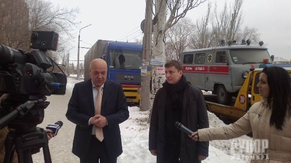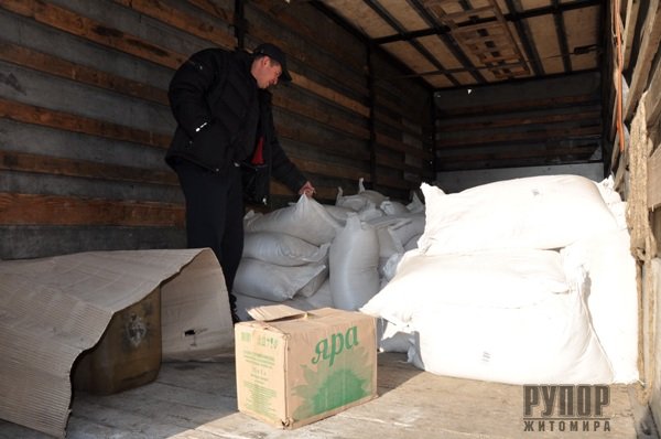 Житомирщина продовжує надавати гуманітарну допомогу східним регіонам України та нашим військовослужбовцям у зоні АТО. 5 грудня на схід держави було відправлено дві вантажівки з продовольчими товарами та будівельними матеріалами. Окремо вирушила також і машина швидкої медичної допомоги. Так, вантаж однієї з фур – вагою близько 20-ти тонн – вирушив на Луганщину. Він включає в себе цукор, борошно, крупи, соняшникову олію, овочі, також більше сотні ящиків із солодкими дитячими новорічними подарунками. Крім того, до цієї ж машини було завантажено й 150 аркушів шиферу, які використають від час будівельно-відновлювальних робіт у регіоні. Другу вантажівку спеціально формували для військовослужбовців із 95-ї Житомирської окремої аеромобільної бригади. Це, передусім, продукти харчування: рибні, м’ясні консерви, торти та інші солодощі. До наповнення цього 8-тонного вантажу долучилися підприємці, зокрема – регіональне представництво кондитерської корпорації «ROSHEN», кондитерська фабрика «Житомирські ласощі», ТОВ «АЛЕНРУД» (працює під торговою маркою «РУДЕН»). Такими чином, наших бійців у зоні АТО привітали з Днем Збройних Сил України. Доставку цього вантажу особисто контролював голова облдержадміністрації Сергій Машковський, який 6 грудня із робочим візитом відвідав Сєвєродонецьк та зустрівся із головою Луганської облдержадміністрації Геннадієм Москалем. Це вже другий приїзд представників обласної влади Житомирщини і вдруге — не з порожніми руками. Сергій Машковський привіз фуру гуманітарної допомоги, а також автомобіль швидкої медичної допомоги. «Це подарунок Луганщині від агропромислових підприємств Житомирської області та від усієї нашої громади. Це допомога, яка ще раз підтверджує, що Україна — єдина», – відзначив голова Житомирської облдержадміністрації Сергій Машковський. Прес-служба облдержадміністрації