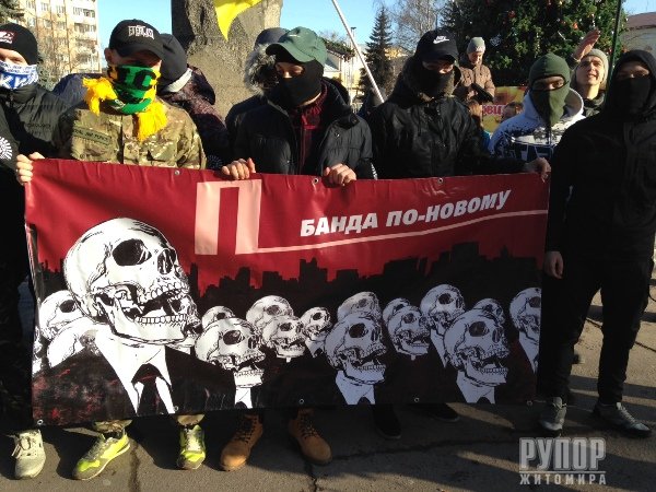 | У Житомирі ультраси та націоналісти пікетували ОДА 14.01 16:40     14 січня організація Чорний Корпус , провела акцію-пікет в підтримку вінницького активіста, коменданта вінницької ода під час революції. Він був заарештований режимом Порошенка після того як привселюдно порвав його портрет. Вважаючи, що система не змінилася і "ригошоколадники"  прийшли на зміну януковичу, ми висуваємо недовіру до нинішньої влади. Одним із гасел нашої акції було: "Банда по-новому" та "Свободу політв'язням".  На завершення акції бійцями Чорного Корпусу була зачитана "Молитва українського націоналіста". «Це не остання наша акція на підтримку Юрія Хорта», - наголошує Андрій БлощінськийRuporZT