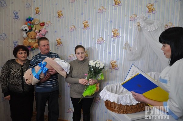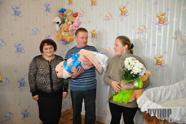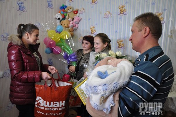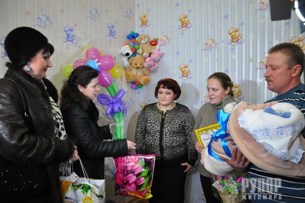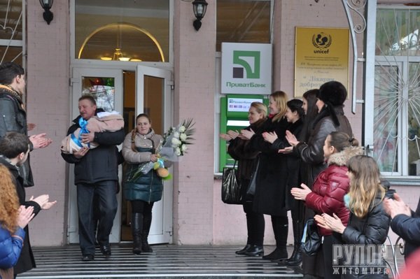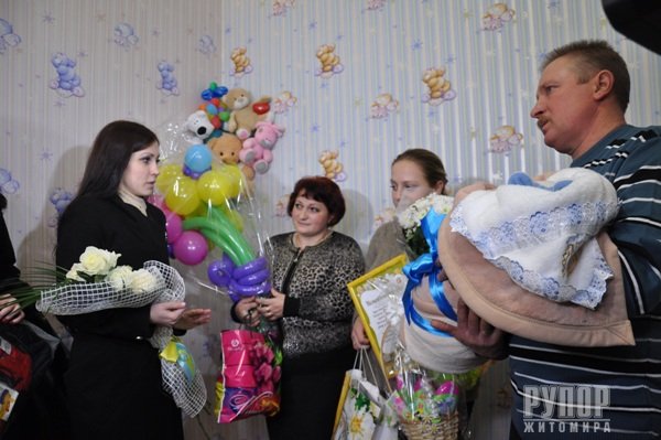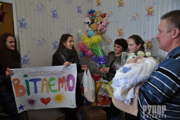 Щоб привітати дружину військовослужбовця із народженням сина, 21 січня, у день їх виписки, до пологового відділення Житомирської центральної міської лікарні №1 прийшли рідні, близькі і багато людей, зовсім чужих, але небайдужих до долі цієї родини.