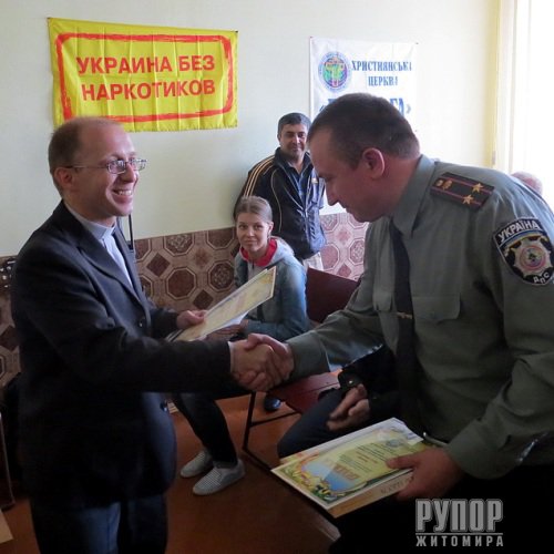заступник начальника управління ДПтС України в Житомирській області Анатолій Бобриньов, представники християнської церкви «Перемога», християнських місій «Світло Правди», «Наріжний Камінь», благодійних організацій «Духовна та благодійна опіка в місцях позбавлення волі», «Асоціація Християнських центрів реабілітації» та «Прорив-Перемога» з міст