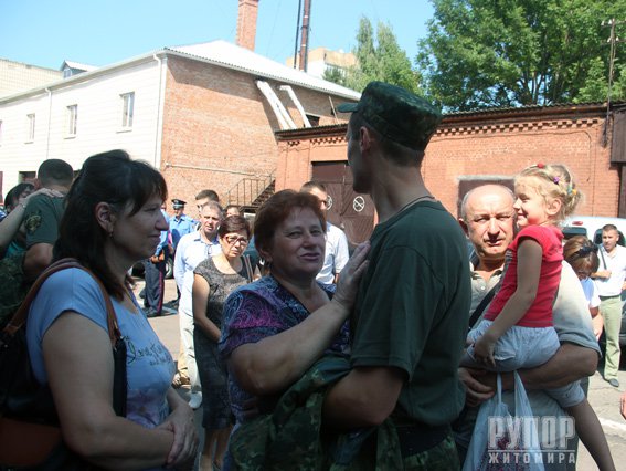 Правоохоронці змінять своїх колег-земляків на Луганщині, де вже півтора року забезпечують правопорядок: патрулюють у населених пунктах, здійснюють контроль та перепускний режим на блокпостах, вартують важливі об’єкти життєзабезпечення. 31 серпня в актовій залі обласного Управління МВС зібрались представники практично усіх служб та підрозділів міліції Житомирщини, які цього разу вирушають у далеку дорогу. Про готовність особового складу до відрядження та виконання поставлених завдань начальнику УМВС області Валерію Рудику доповів командир зведеного загону Володимир Мазарчук. - Ви всі добровольці, всі козацького роду, - наголосив Валерій Рудик. – Відповідально ставтеся до служби, підтримуйте один одного і разом - ви будете сила. Ваше завдання у зоні проведення антитерористичної операції - робити все для того, аби не постраждали мирні люди. Також очільник УМВС передав командиру зведеного загону український прапор з відбитками долонь маленьких житомирян, виготовлений ними під час занять у місцевому дитячому центрі. За побажанням дітлахів міліціонери встановлять прапор на найвищій точці у місці дислокації полісян. Слова підтримки та подяки від імені волонтерів та небайдужих житомирян разом з благодійною допомогою правоохоронцям передала радник голови Громадської ради при Житомирській ОДА Тетяна Герасимчук: «Будемо молитися, чекати на вас та допомагати, чим тільки зможемо». Інструктаж перед від’їздом правоохоронцям провів заступник начальника УМВС Микола Юсковець. Після кількахвилинного прощання з рідними, друзями та колегами правоохоронці Житомирщини вирушили боронити мир і правопорядок у зоні проведення АТО.
