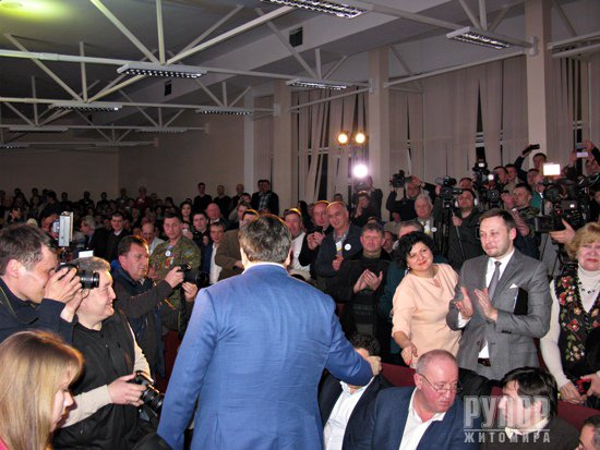 Голову Одеської ОДА Михеїла Саакашвілі зустріли бурхливими оваціями, і свій виступ він розпочав з критики даної влади та прем’єр-міністра Арсенія Яценюка.