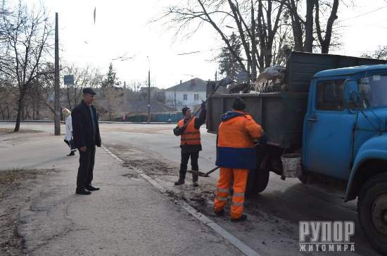 На вулицях міста комунальне підприємство «Управління автомобільних шляхів» Житомирської міської ради та ВЖРЕПи продовжують вести прибирання. Протягом дня, 21 березня, було вивезено 135 т шляхового змету. «Зараз комунальні підприємства міста підмітають тротуари, змітають на проїжджу частину та укучують шляховий змет. Взимку на вулиці міста було висипано 8 тисяч тон піщано-сольової суміші. Прибирання кожної вулиці здійснюється вже втретє. Після цього в суху погоду на дороги вийдуть пилососи», – розповідає начальник управління комунального господарства міської ради Олександр Марцун. Загалом в місті працювали 5 навантажувачів, 15 вантажних автомобілів та спецтехніка «Скандія». Прибирання проводилося по вул. Пушкінська від Старого бульвару до вул. А. Щастного (одна сторона), вул. Любарська, вул. В. Бердичівська, вул. Київська, вул. Перемоги, вул. Чуднівська, вул. Космонавтів від вул. Корольова до вул. Селецької (одна сторона), вул. Кибальчича, вул. Ціолковського, вул. Короленка, вул. Ольжича від вул. Старовільської до вул. Охрімова гора, вул. Шевченка, пр-д Тутковського, вул. М. Грушевського від вул. Покровська до пр. Незалежності (одна сторона), вул. Вільський шлях від м-ну Визволення до вул. Індустріальної (одна сторона), пр. Незалежності та пр. Мира. Також 21 березня по вул. Вітрука проводилась ліквідація аварійних вибоїн. Крім того, працівники КП «Зеленбуд» Житомирської міської ради цього ж дня зрізали 9 дерев по вул. Богунській, в районі житлових будинків 19-21, та обрізали 11 дерев на території ліцею № 24.