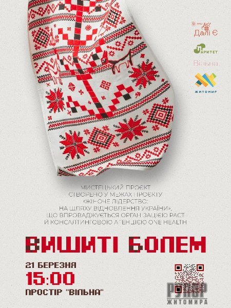 21 березня о 15-00 у Житомирі відбудеться презентація мистецького проєкту «Вишиті болем»