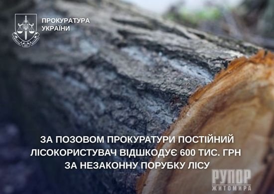 На Житомирщині постійний лісокористувач відшкодує 600 тис. грн за незаконну порубку лісу