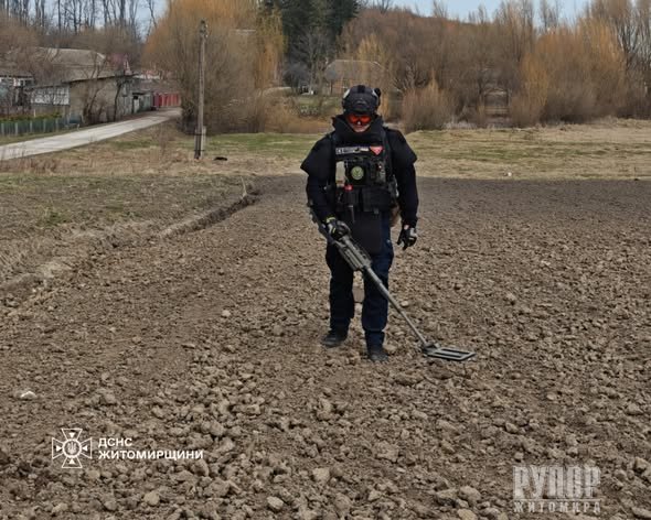 Під час проведення земляних робіт на присадибній ділянці в селі Райгородок Бердичівського району місцевими жителями було виявлено вибухонебезпечний