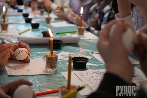 Майстерклас « Розпис писанок» відбувся із народознавицею Марією Масловською. Дітей знайомили не просто з декором великодніх яєць, а з давнім способом