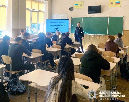 Днями інспекторка служби освітньої безпеки Коростенського райуправління спільно з поліцейським офіцером громади провели заняття з учнями міського ліцею на