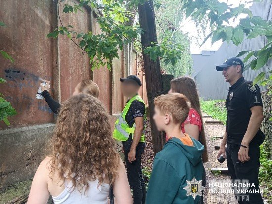У Коростені поліцейські разом із молоддю знищували рекламу наркотиків