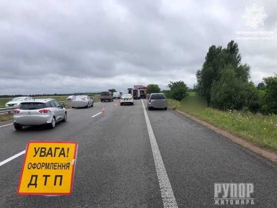 У зв’язку з дорожньо-транспортною пригодою, на 124 км автомобільної дороги Київ — Чоп (поблизу села Березина, Житомирської області) рух транспорту на місці
