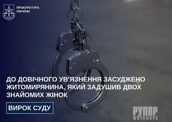 До довічного ув’язнення засуджено житомирянина, який задушив двох знайомих жінок
