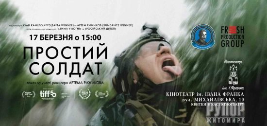 У Житомирі відбудеться зустріч з режисером Артемом Рижиковим та перегляд українського повнометражного документального фільму «Простий солдат»