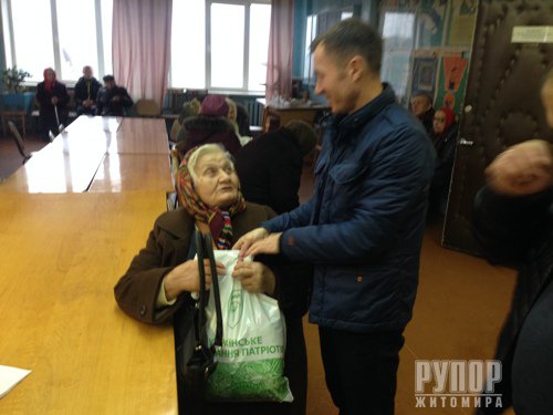 У Малині за сприяння Житомирської обласної організації УКРОПу мешканці міста з особливими потребами теж отримали гуманітарну допомогу. Укропівці передали людям згущене молоко, рибні консерви, олію, цукор, чай та крупи. Спецнабори вручив голова Малинської міської організації УКРОПу Василь Федоренко в центрі реабілітації інвалідів «Світанок».