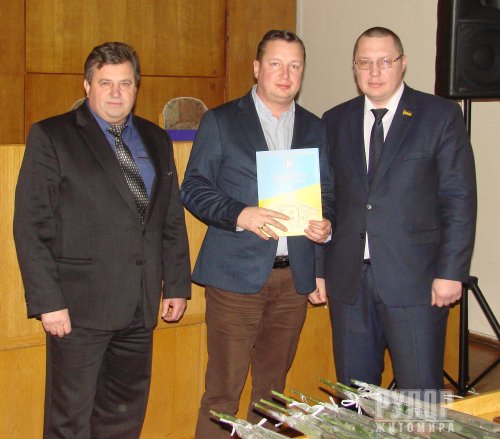 Голова Житомирської обласної організації УКРОПу, депутат Богунської районної ради міста Житомира Андрій Ковальов до Дня місцевого самоврядування отримав грамоту від Житомирського міського голови Сергія Сухомлина за високий професіоналізм, активну громадську позицію, сприяння у вирішенні питань населення району. «Для мене депутатська діяльність настільки ж важлива, як і професійна та партійна. У житомирян доволі часто такі самі проблеми, як і в мешканців райцентру чи села. Переважно побутові, комунальні. Доводиться допомагати людям і в соціальних питаннях, часто і в юридичних, адже я – професійний юрист. Звісно, вирішувати проблеми комплексно заважає брак коштів у бюджеті. Але головне – все ж таки ефективне, раціональне використання ресурсів. Саме це й відстоюють наші депутати-укропівці», – зазначив Андрій Ковальов. Довідка. У двох районних радах міста Житомира – Богунської та Корольовської, працюють 11 депутатів від УКРОПу.