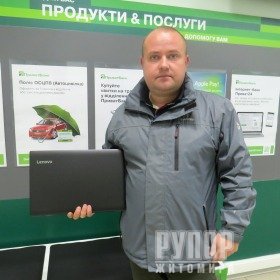 “Нещодавно в іншій компанії виграв комп’ютерну мишку і пожартував, що неодмінно мушу виграти ще й ноутбук чи комп’ютер. А згодом дізнався про перемогу й у банківській акції. Дуже цьому радий”, - розповів житомирянин Вадим Левківський.
