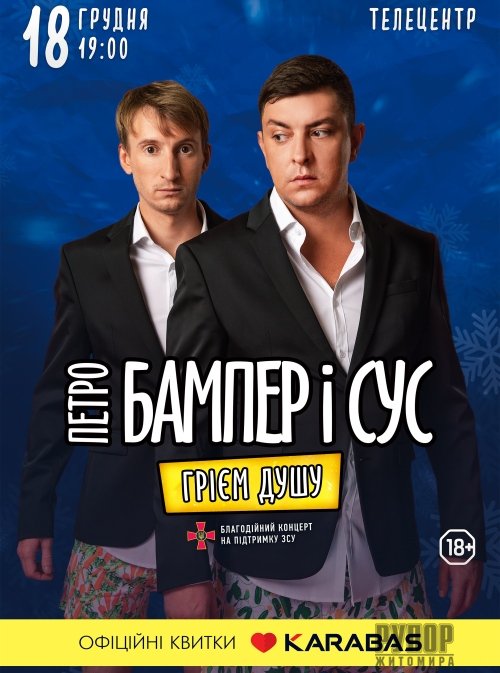 «Бампер і Сус» у неділю, 18 грудня, о 19.00 у телецентрі чекають всіх житомирян і гостей міста на великому концерті «Грієм душу».