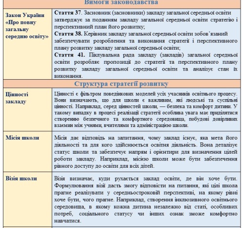 Управлінням Державної служби якості освіти у Житомирській області акцентується увага на тому, що важливою частиною роботи директора як менеджера є формування стратегічного бачення та планування розвитку закладу освіти. Стратегічне управління — це безперервний процес, обов’язковою частиною якого є розроблення Стратегії розвитку закладу освіти. Стратегія розвитку дає можливість визначити напрями руху для досягнення основної мети — забезпечення якості освіти.