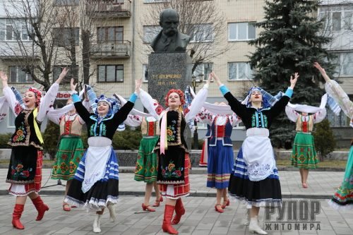 Сьогодні, 09 березня, у м.Житомир відбувся меморіальних захід з нагоди 209-ї річниці від дня народження Тараса Григоровича Шевченка, участь у якому взяв заступник начальника Житомирської ОВА Юрій Денисовець, а також заступник голови Житомирської обласної ради Володимир Ширма, представники Житомирської міської ради, начальних закладів Житомирщини, громадськість та ЗМІ. Учасники заходу поклали квіти до памятника Кобзарю, а також молодь Житомирщини представила присутнім театралізований перформанс з декламацією віршів Т.Г. Шевченка. Довідково. Тарас Шевченко – видатний український поет, прозаїк, драматург, художник, політичний і громадський діяч. Він був людиною універсальних обдарувань та інтересів. Все його життя і творчість були присвячені українському народу. Поет мріяв про ті часи, коли його країна буде незалежною суверенною державою, коли в Україні шануватимуться мова, культура та історія народу, а люди будуть щасливими. Ім’я Тараса Шевченка відоме в усьому світі: у багатьох країнах йому встановлені пам’ятники, його твори перекладені багатьма мовами світу, його ім’ям в Україні названі навчальні заклади, театри, площі, вулиці, міста. Національна опера України, Київський національний університет, центральний бульвар міста Києва носять ім’я видатного сина українського народу – Тараса Шевченка.