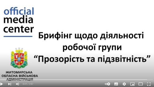 В Житомирській ОВА відбувся брифінг щодо результатів та подальшої діяльності робочої групи “Прозорість та підзвітність”