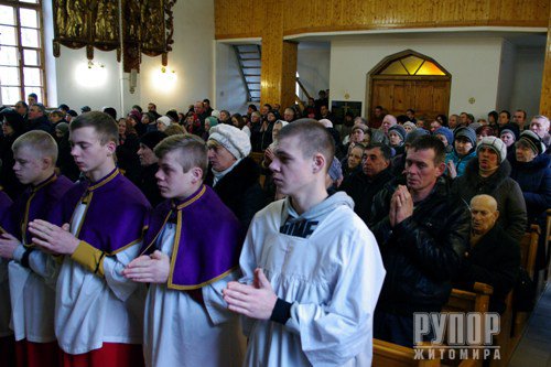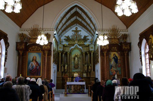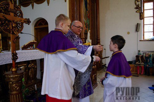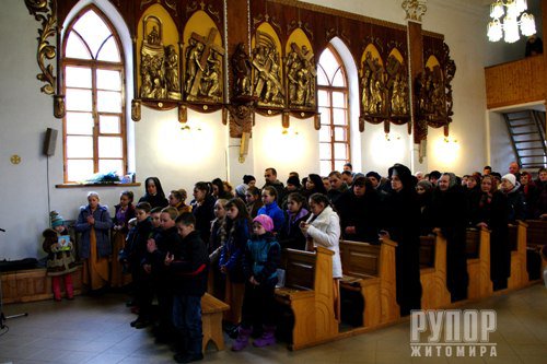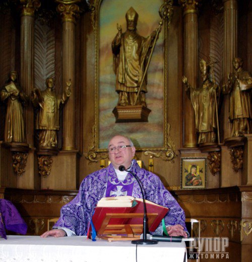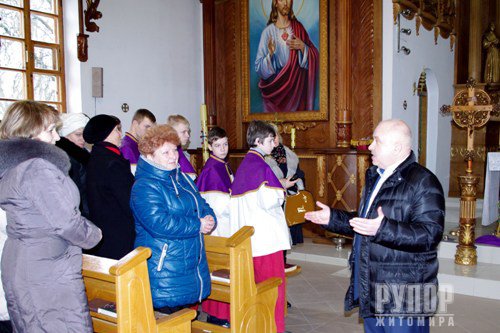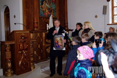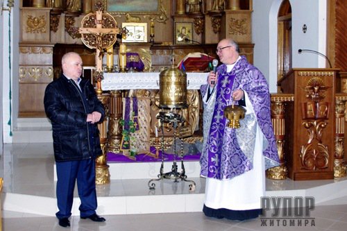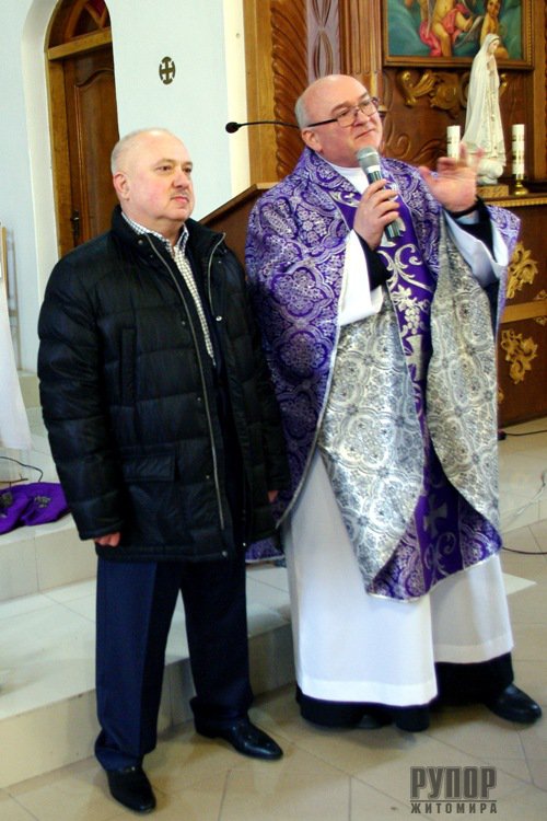 "У нас сьогодні дуже гарне свято: завдяки народному депутату Віктору Развадовському у нашому храмі з'явилася колонна хресна дорога чотирьох євангелістів (Луки, Іоана, Матвія і Марка, -